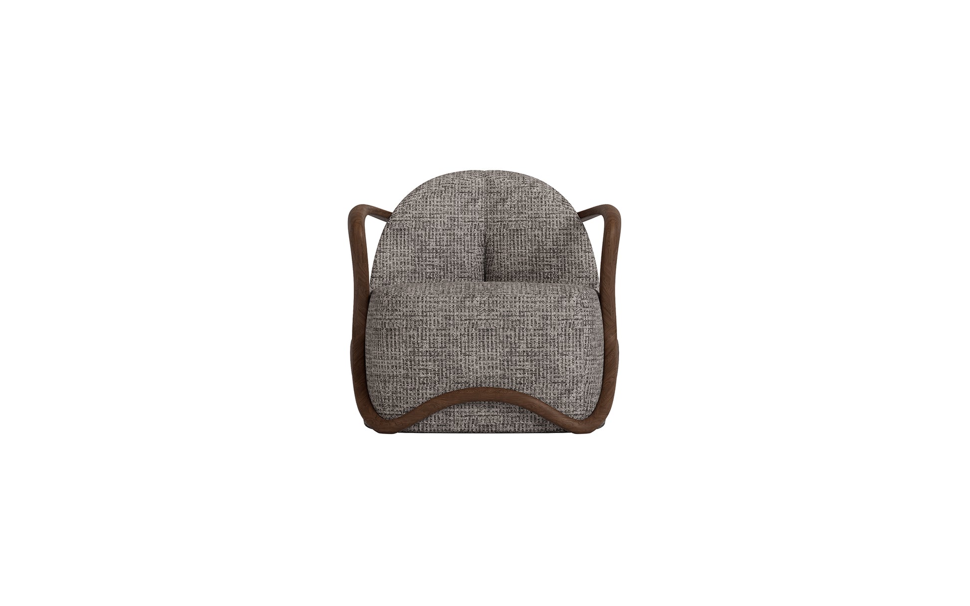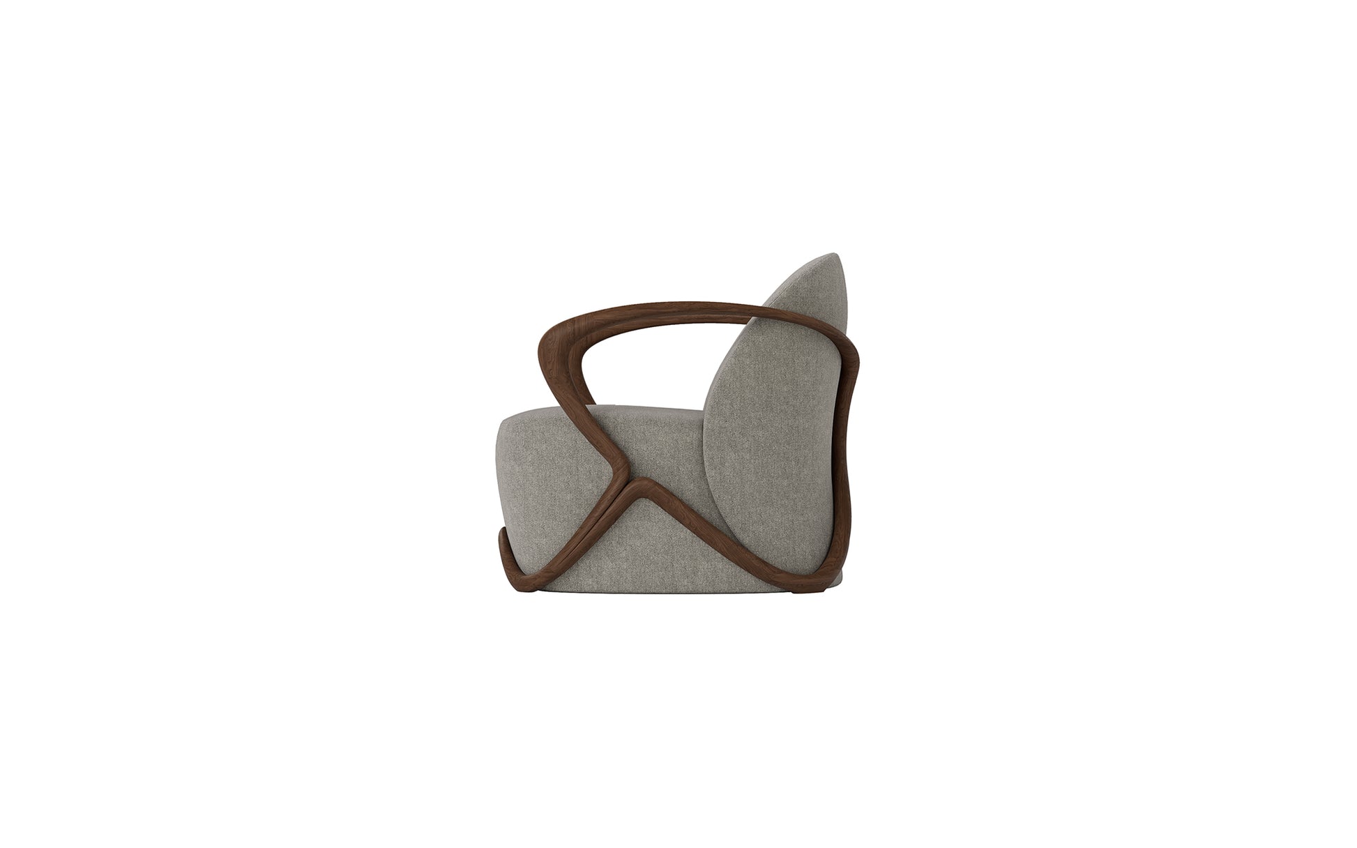 Augusto Lounge Chair I combines refined design with exceptional comfort. Its sophisticatedly serpentine wooden frame, crafted in smoked elm, natural walnut, or piano painting birch, extends seamlessly into the armrests, giving the chair a distinctive and elegant character. The curved structure supports a generously padded seat with flexible multi-density polyurethane foam and covered with fibre for long-lasting comfort.