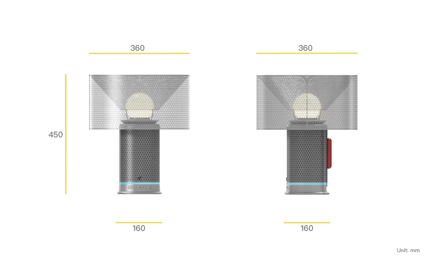360 W x 450 H x 360 D mm (Round shade version)