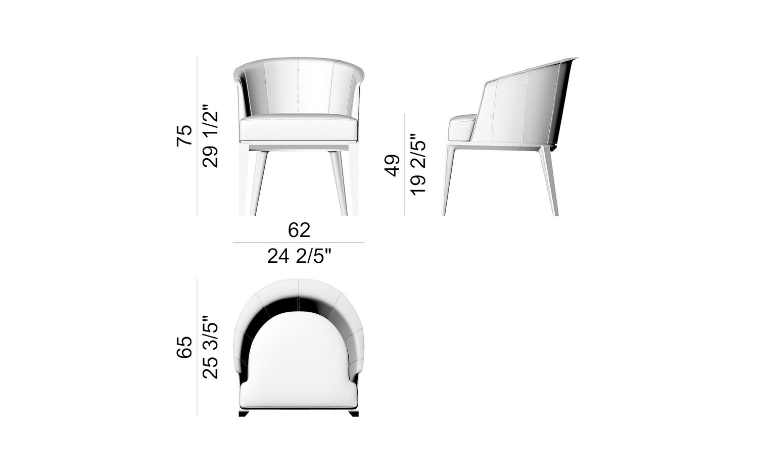 Laura armchair with base in smoked elm, natural walnut, or piano painting birch, and the structure of the back in curved plywood. The padding is in flexible multi-density polyurethane, covered with fibre. The upholstery of the back has special stripes that can be in saddle leather or leather, while the seat is always in fabric or leather. It is available in various colors, all completely removable.