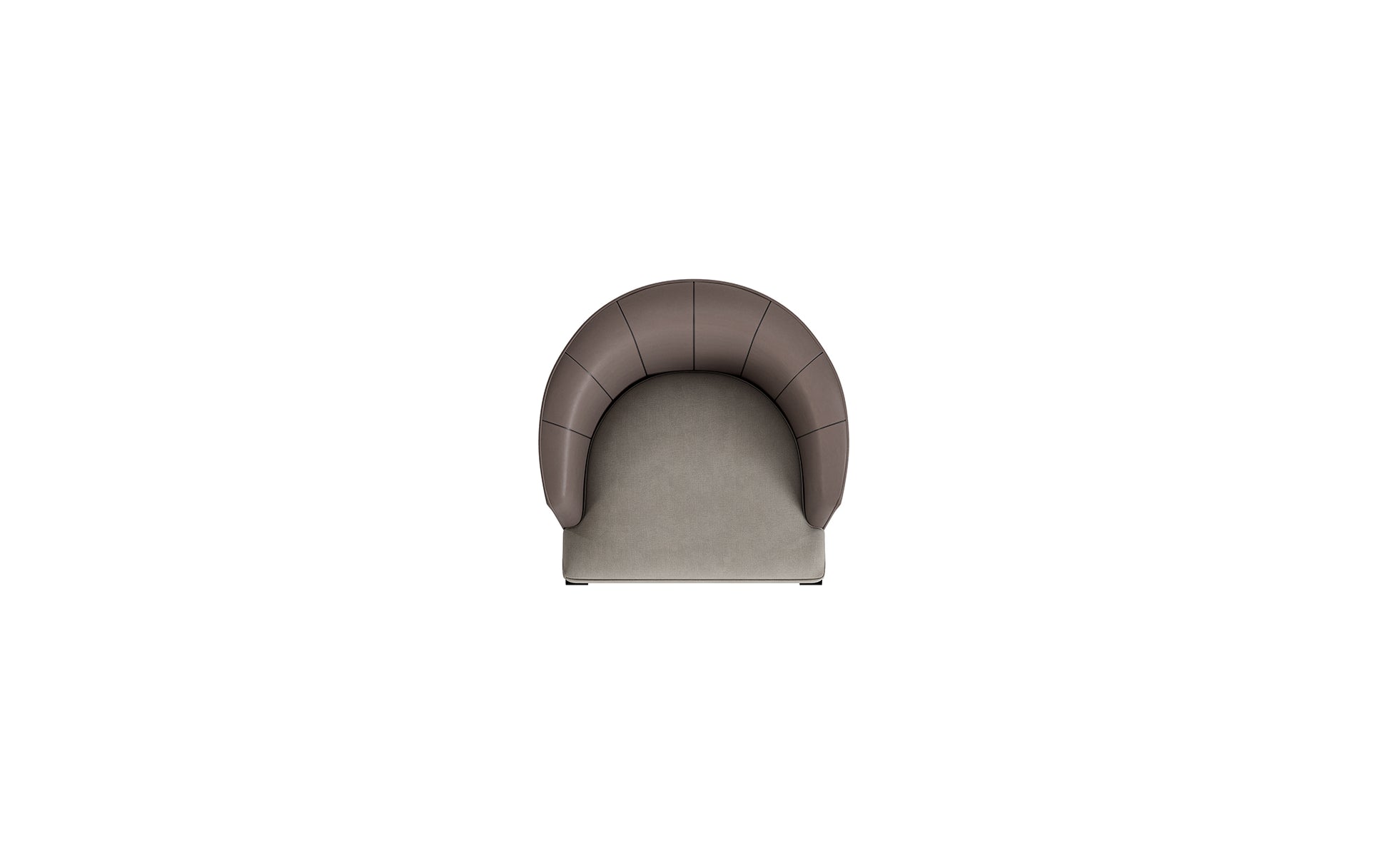 Laura armchair with base in smoked elm, natural walnut, or piano painting beech, and the structure of the back in curved plywood. The padding is in flexible multi-density polyurethane, covered with fibre. The upholstery of the back has special stripes that can be in saddle leather or leather, while the seat is always in fabric or leather. It is available in various colors, all completely removable.