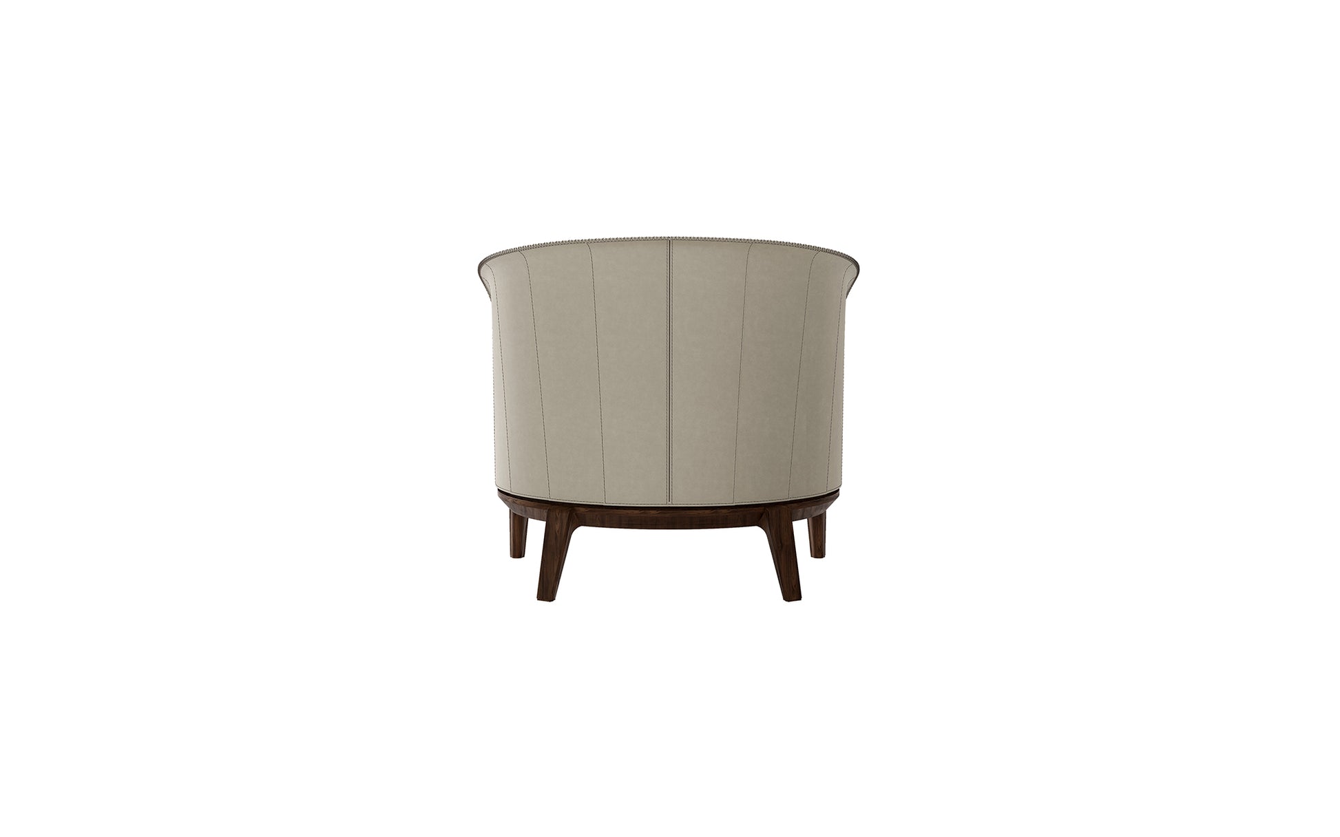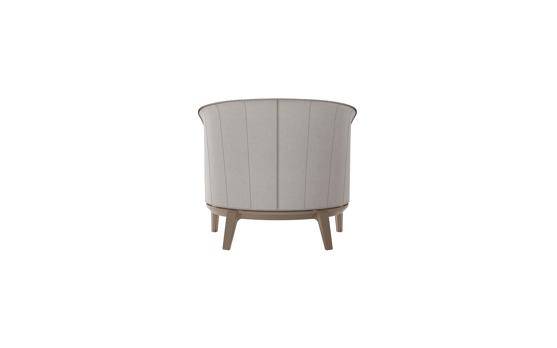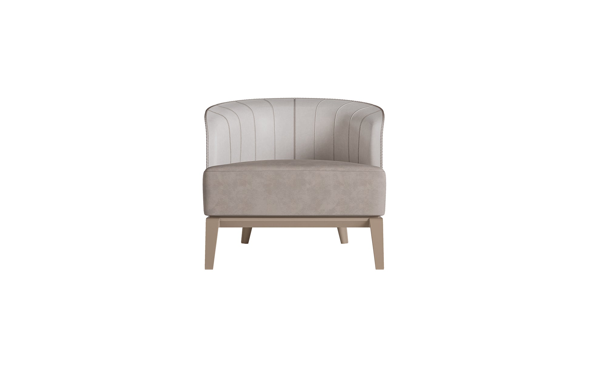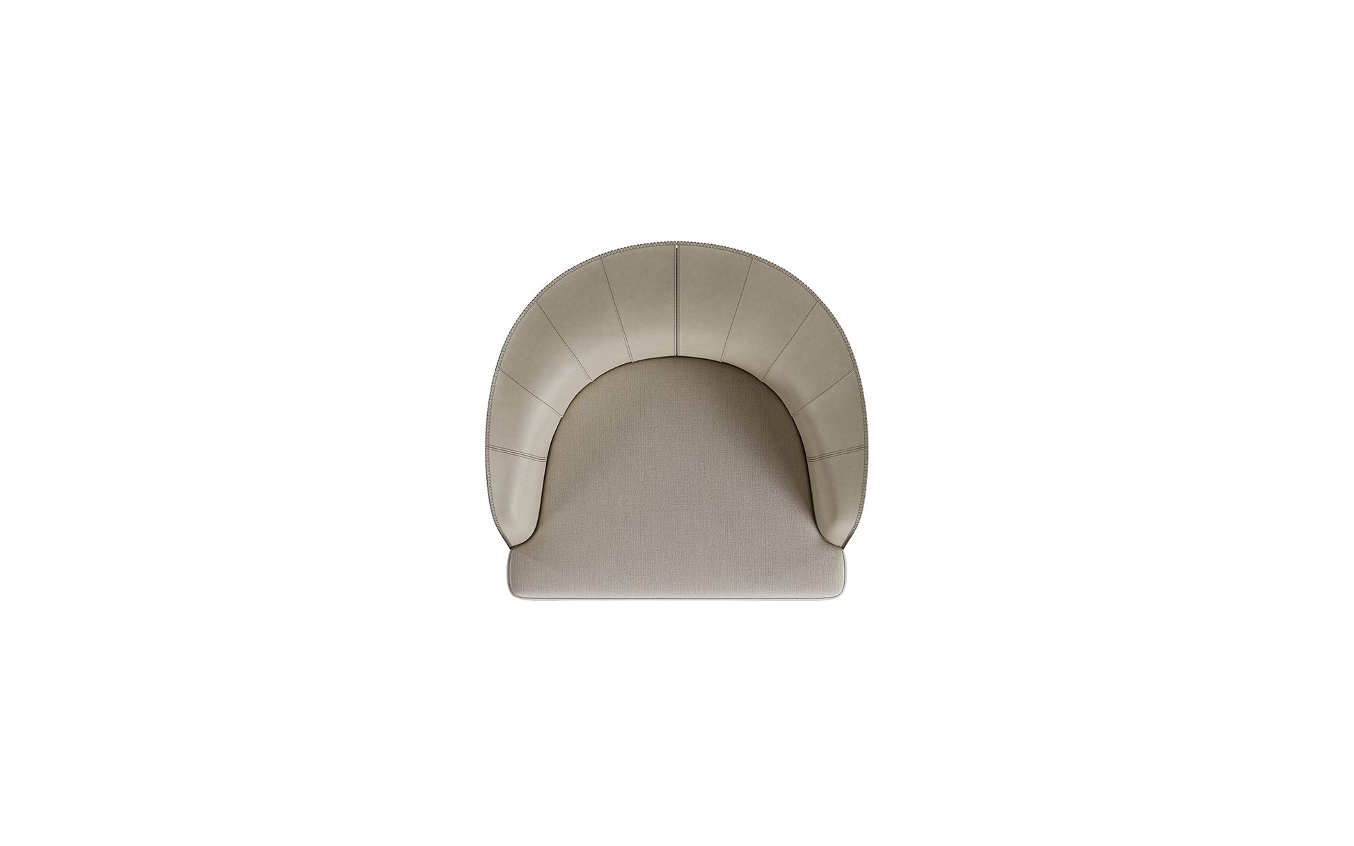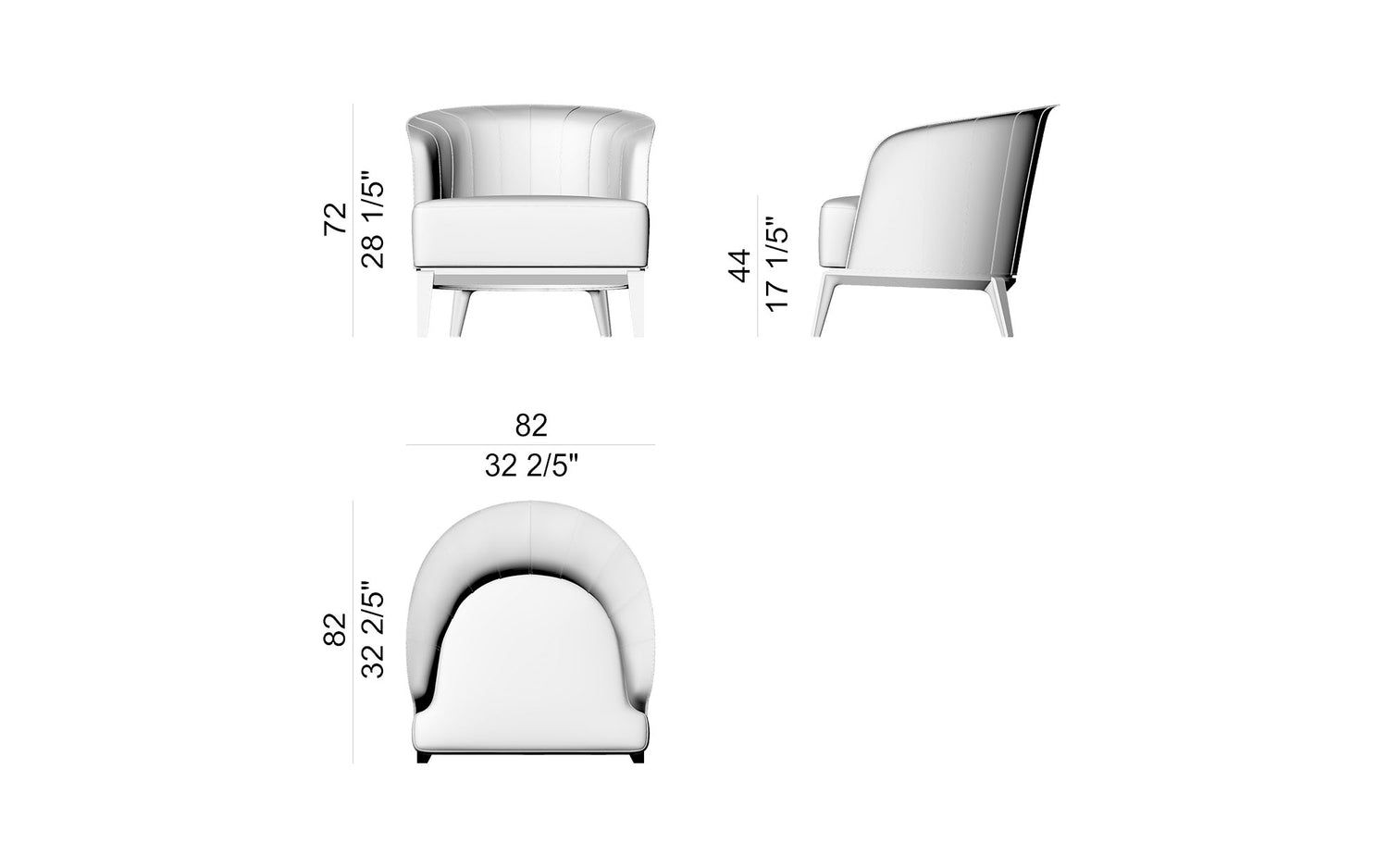 Laura lounge chair I with base in smoked elm, natural walnut, or piano painting birch, and the structure of the back in curved plywood. The padding is in flexible multi-density polyurethane, covered with fibre. The upholstery of the back has special stripes that can be in saddle leather or leather, while the seat is always in fabric or leather. It is available in various colors, all completely removable.