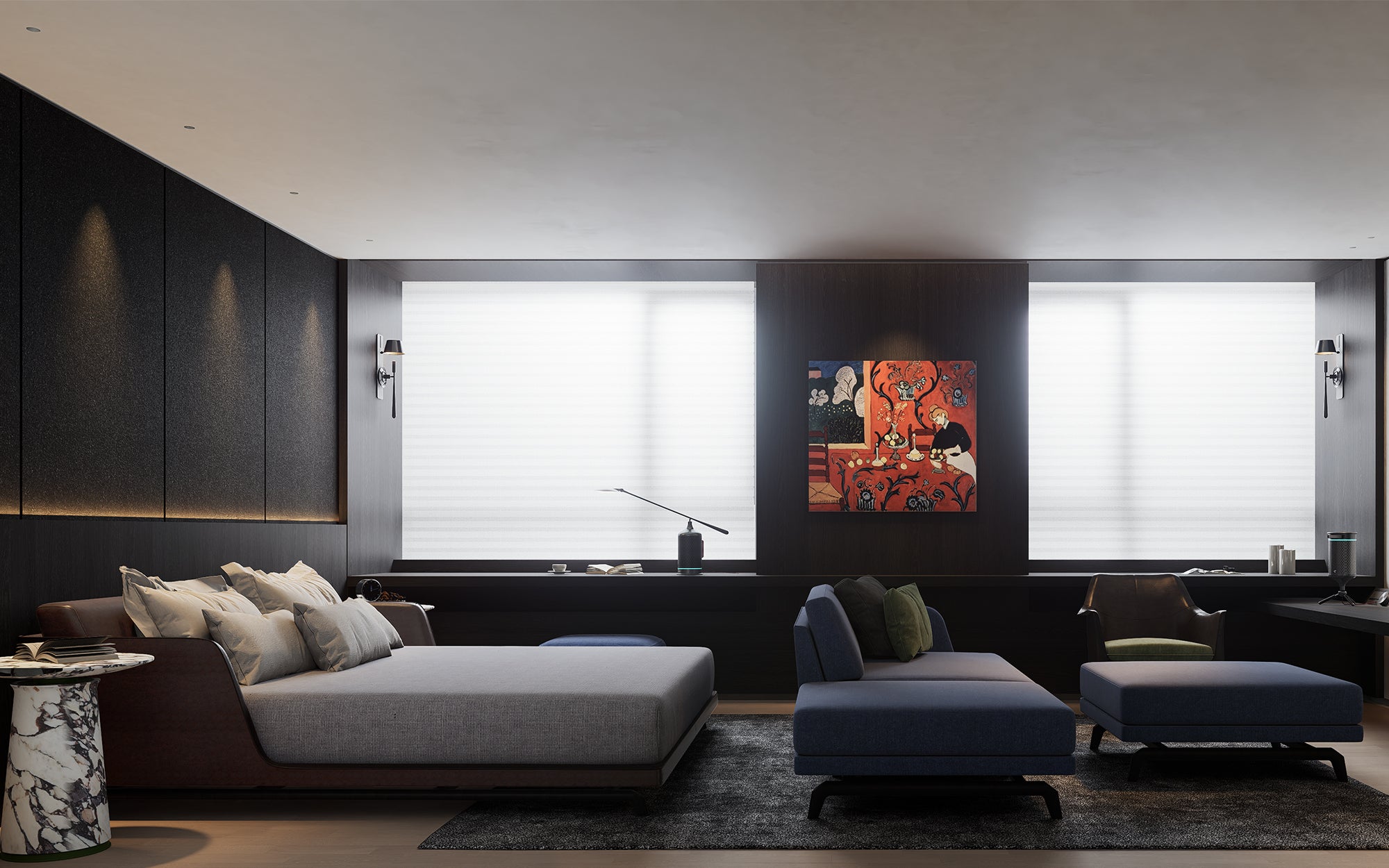 With a pair of arms that embrace and a built-in sleeping sound system, the soft, enveloping headboard of the Trend Bed Plus creates a cozy feeling of intimacy. The cushioned bed frame and slender solid wood base with inlaid metal add a touch of elegance, while the fabric or leather upholstery invites rest and relaxation.