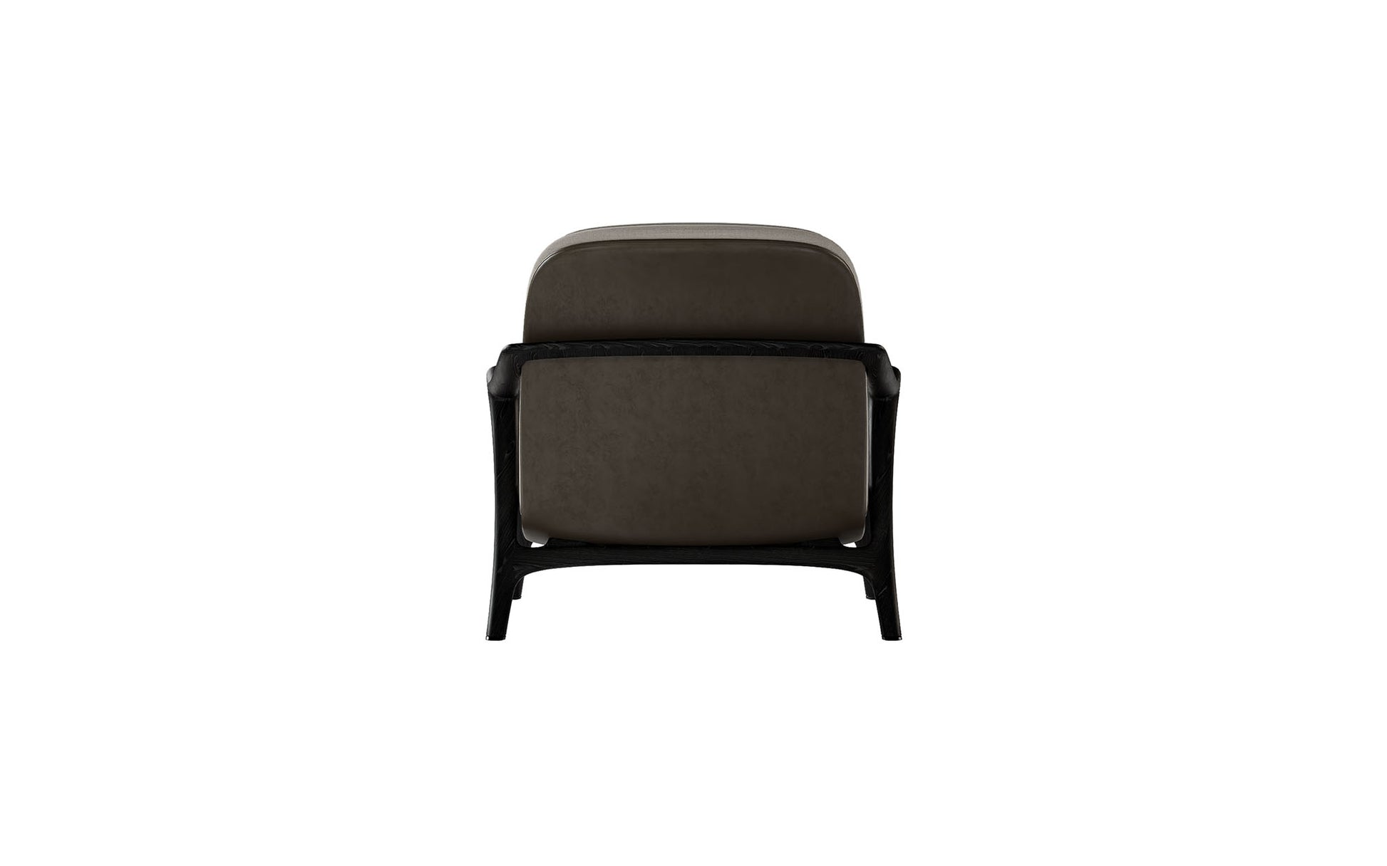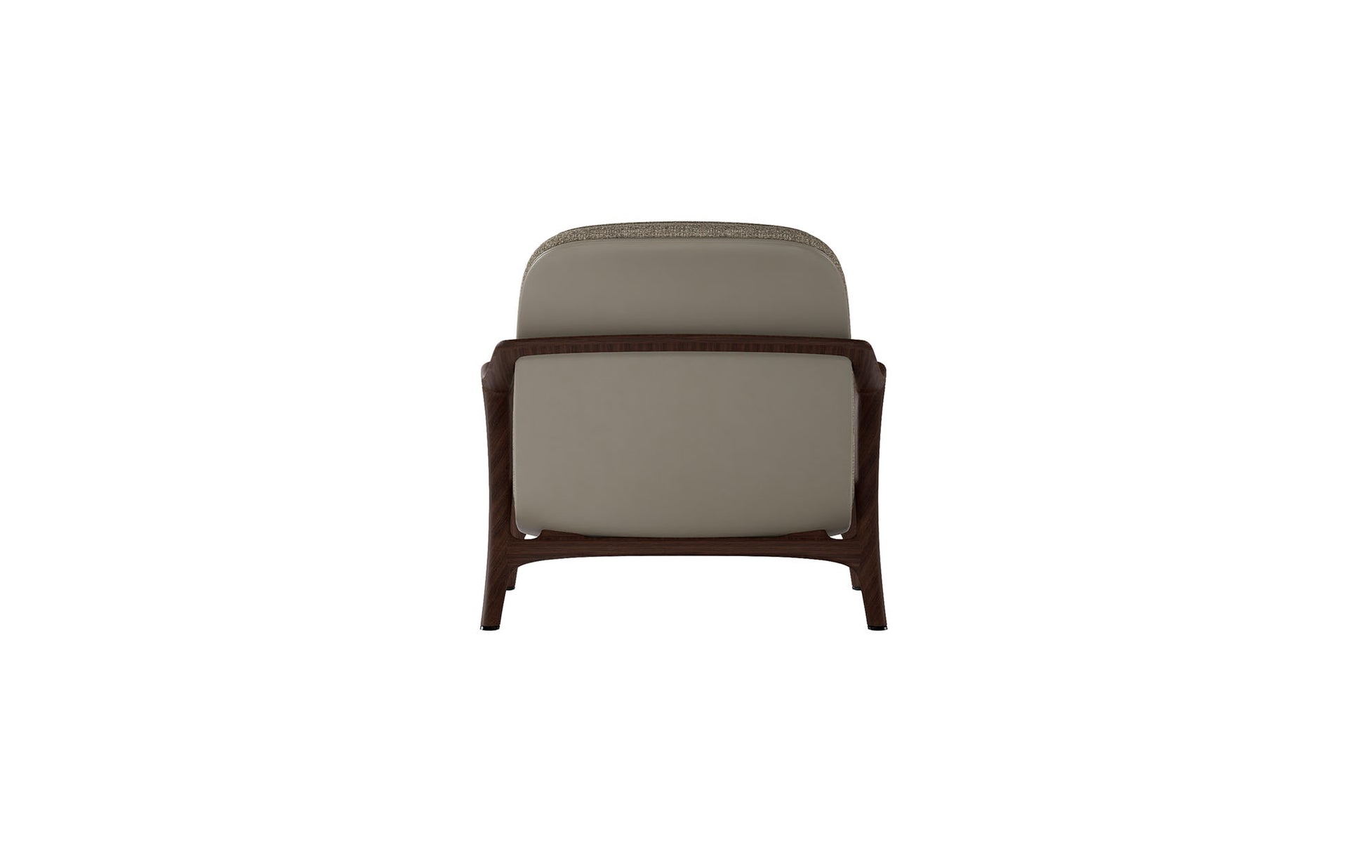 Unique styled lounge chair with the structure in natural walnut or smoked elm, and the structure of the back in curved steel plate with saddle leather upholstery. The padding is in flexible multi-density polyurethane, covered with fibre. The upholstery is in fabric or leather, it is available in various colors, all completely removable.