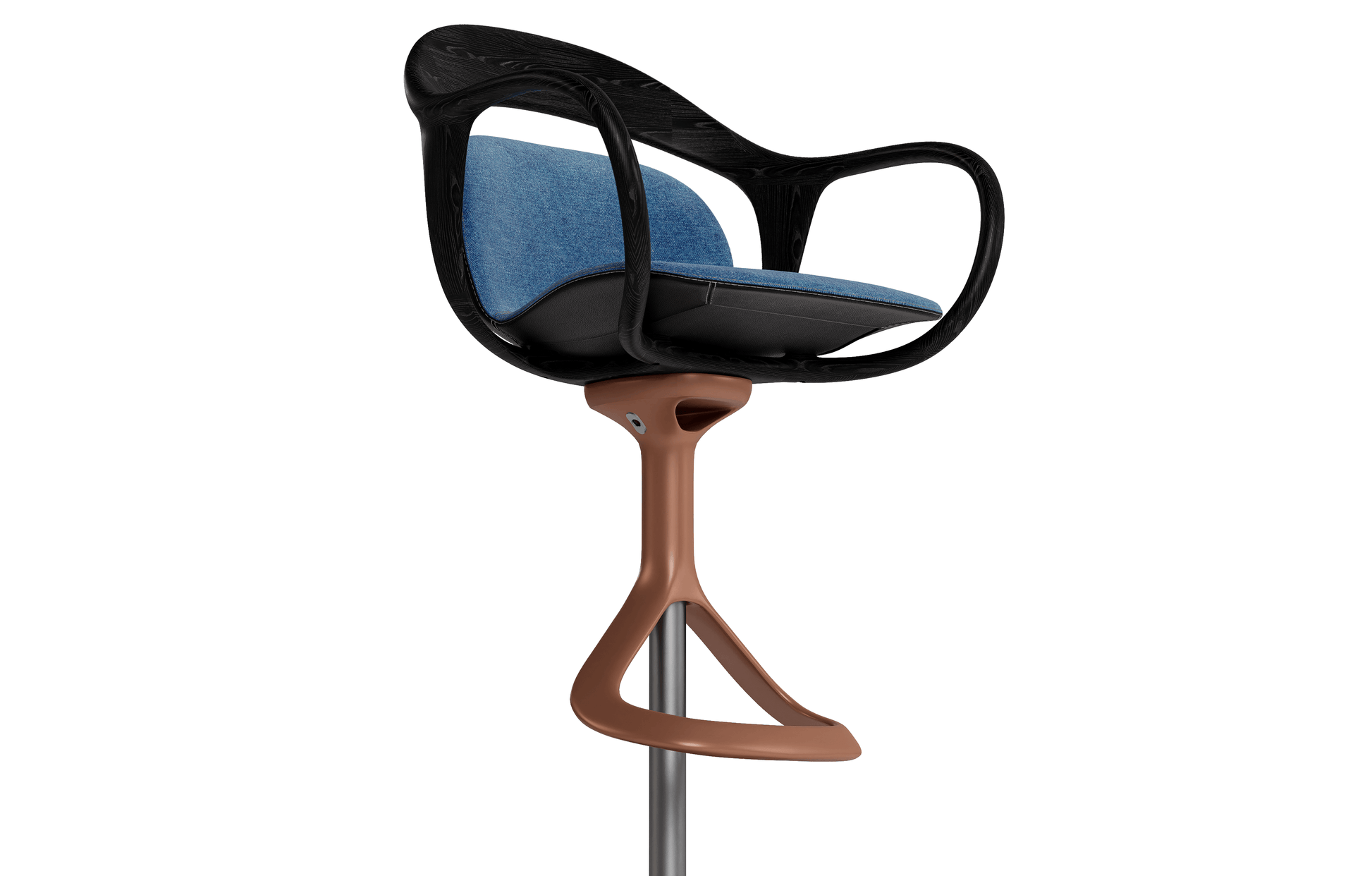 吧台凳底座采用缎面钢结构。座椅框架采用烟熏榆木、天然胡桃木或钢琴烤漆桦木,靠背结构采用弧形胶合板。填充物采用柔性高密度聚氨酯,覆盖有纤维。外壳采用马鞍革或皮革,内层采用织物。它有多种颜色可供选择。