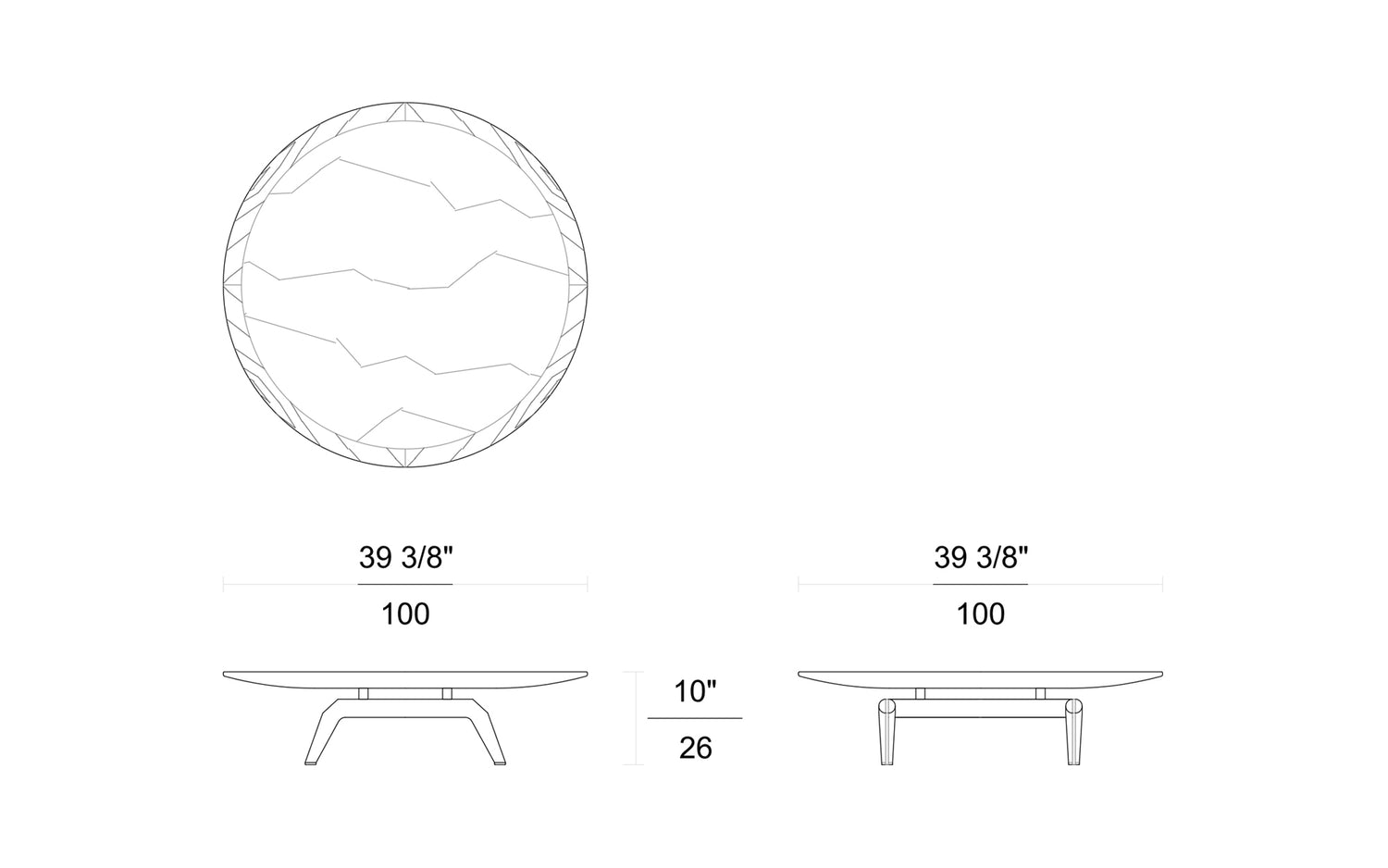 Trend Round 咖啡桌采用木质结构,内嵌金属,有多种饰面可供选择。这些饰面包括木质贴面、皮革、石材和玻璃。在镶嵌台面版本中,人们可以欣赏到将镶嵌木质贴面、皮革、石材或玻璃融入木质框架的精湛工艺。